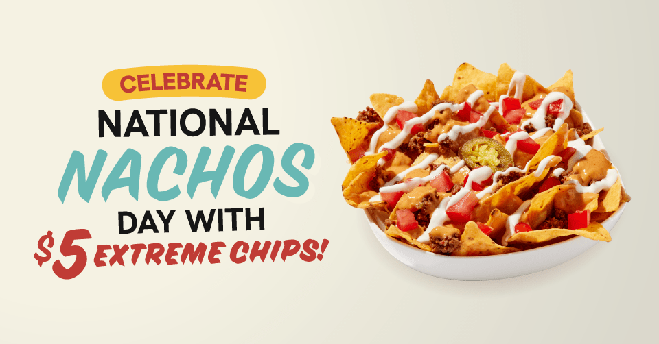 Celebrate National Nachos Day but in an extreme way. On November 6th you can get our Extreme Chips for just $5!