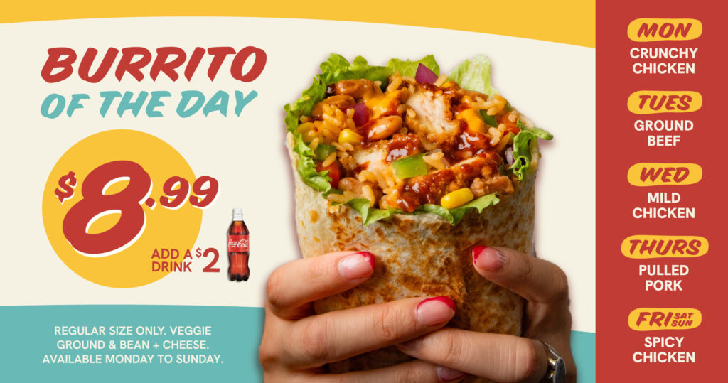 Craving something delicious? 🤤 Head over to 10166 Glendon Dr., Komoka, ON, and treat yourself to our $8.99 Burrito of the Day featuring a different protein every day. Add $2 for Pop. 🌯✨ Don’t wait, this unbeatable offer is only available for a limited time! ⏳